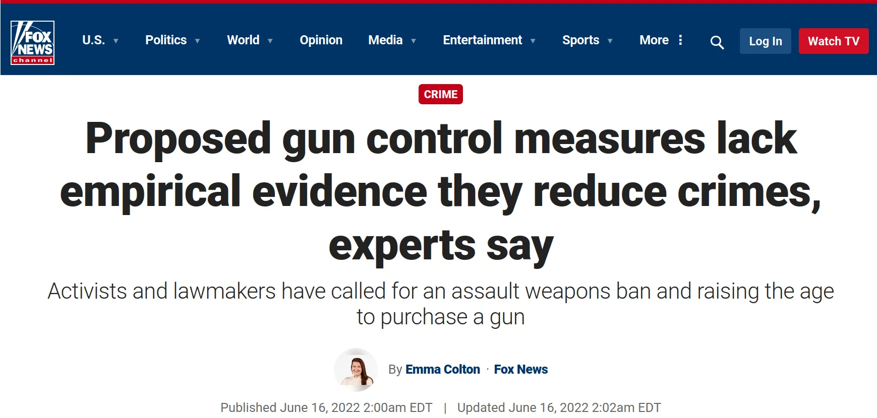 Extended excerpt from the Fox News article ‘Proposed gun control measures lack empirical evidence they reduce crimes, experts say’