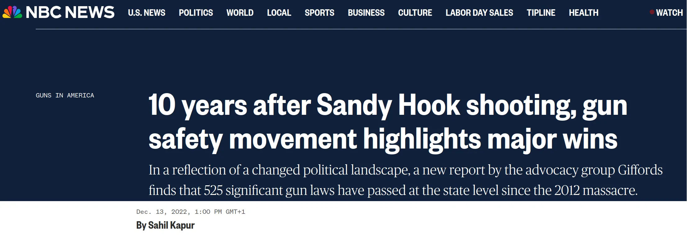 Extended excerpt from the NBC News article ‘10 years after Sandy Hook shooting, gun safety movement highlights major wins’