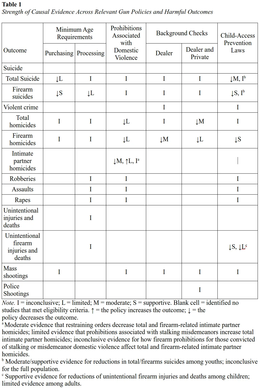 A recent Rand Corp. review of causal-design studies classified the strength and direction of evidence for these policies across multiple harmful outcomes.