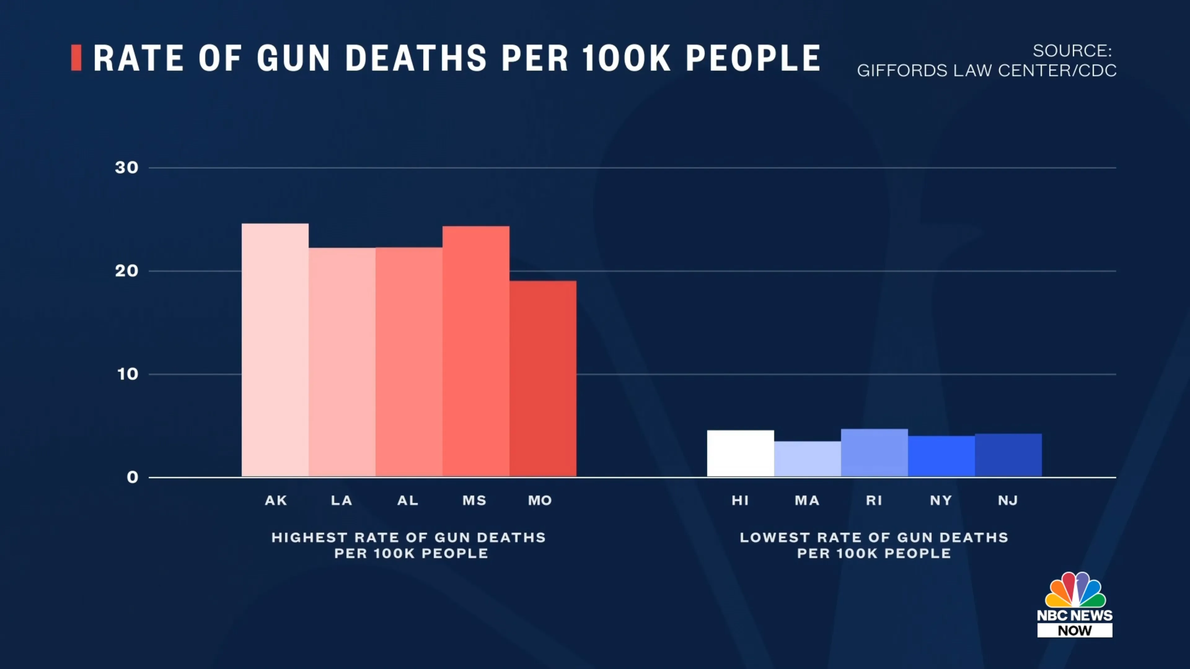 Excerpt from the NBC News report ‘Examining effectiveness of gun laws in blue, red states’