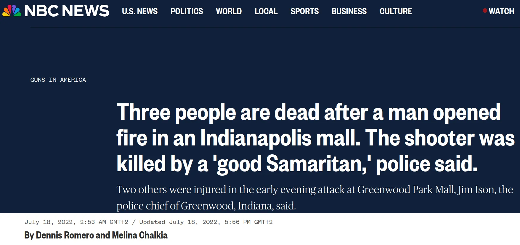 Extended excerpt from the NBC News article ‘Three people are dead after a man openend fire in an Indianapolis mall’